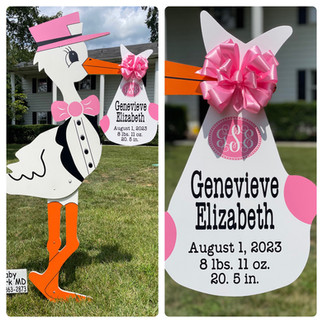 Welcome Baby Genevieve! Baby Stork MD online store 24/7 to reserve your Stork or Carriage lawn announcement today!